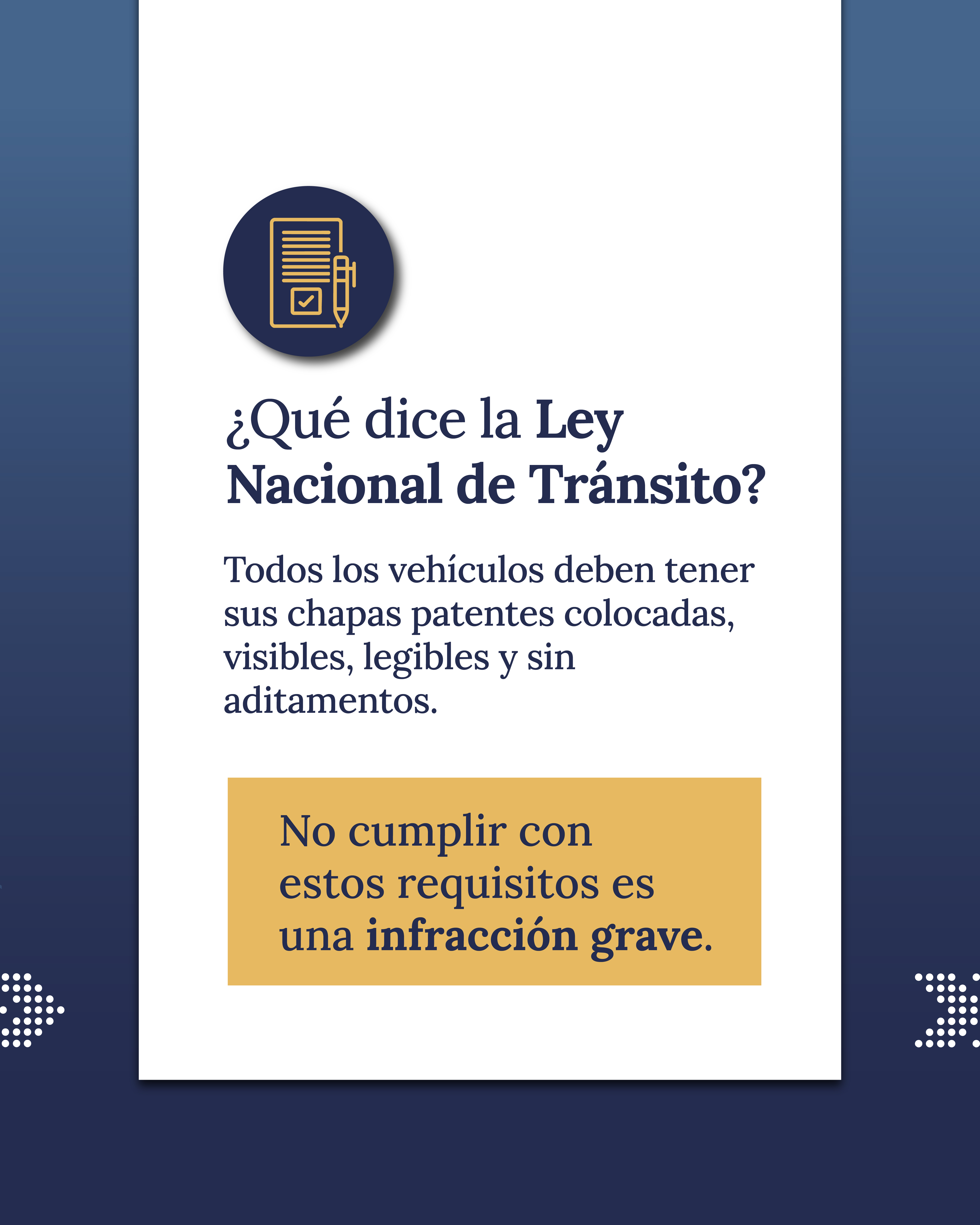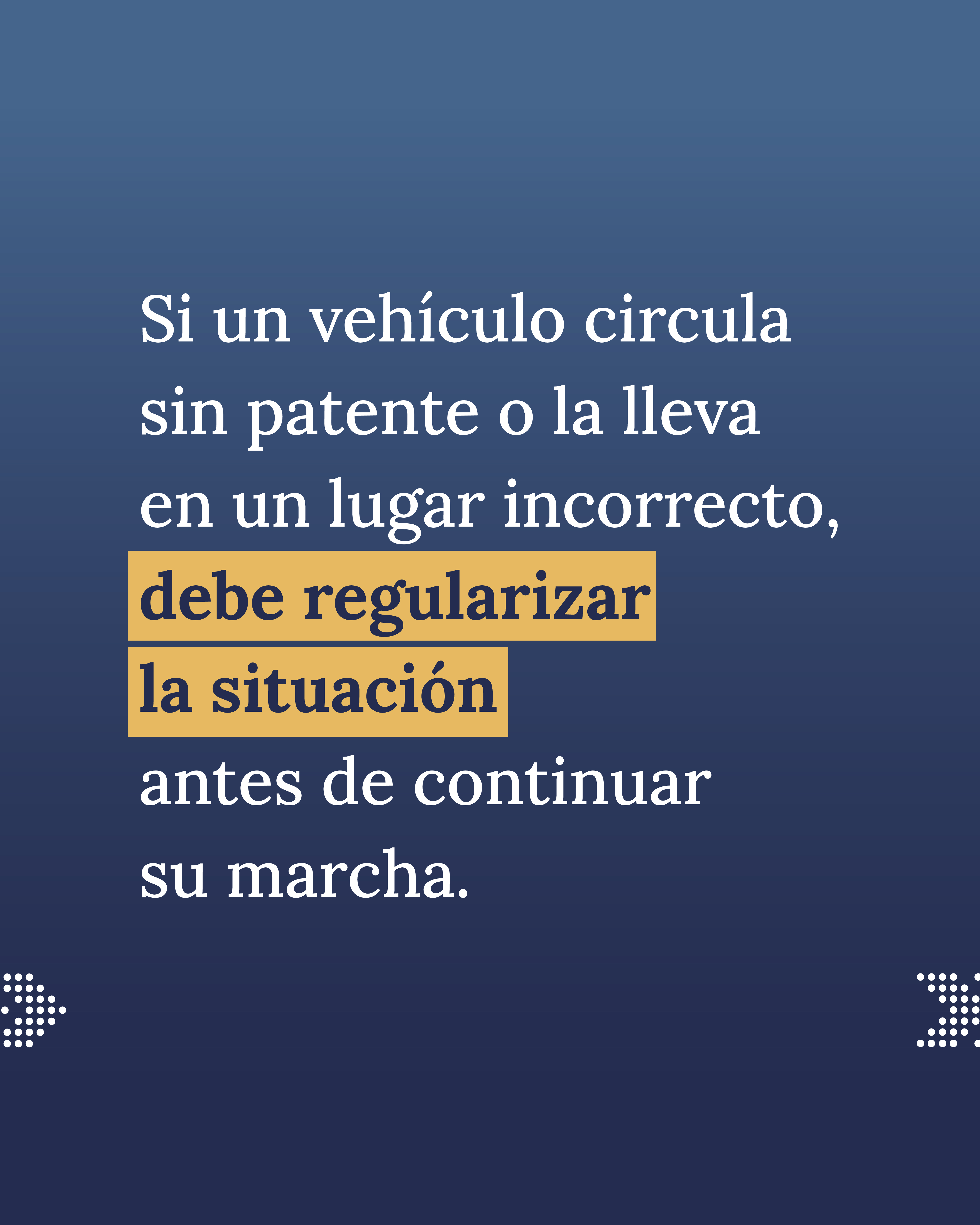 La normativa nacional exige que todos los vehículos —incluidos acoplados y semirremolque— tengan sus chapas patentes colocadas, visibles, legibles y sin ningún tipo de aditamento. También establece que, si un vehículo circula sin patente o la lleva en un lugar incorrecto, no puede continuar su marcha hasta regularizar la situación.
