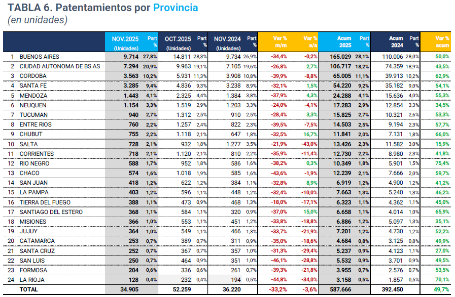Acceda al informe completo aquí: patentamientos autos Noviembre 2025.pdf